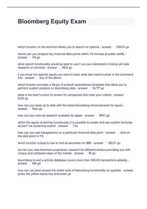 Read Online Bloomberg Equity Essentials Exam Answers Pdf Kindle Editon